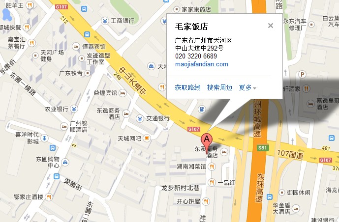 廣州天河區(qū)東圃鎮(zhèn)毛家飯店靠近天河區(qū)東圃鎮(zhèn)BRT站,具體位置如下圖所示(標(biāo)示A為毛家飯店)