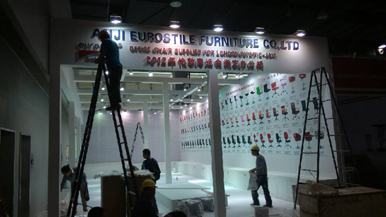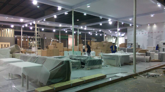 2014廣州辦公家具展后天開(kāi)展,畢加工程隊(duì)伍全力布展