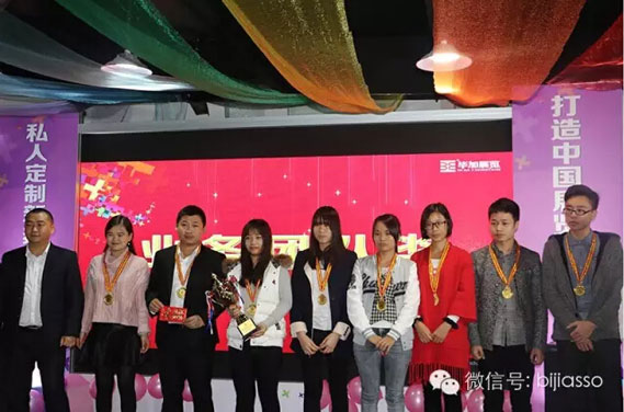 有個(gè)人獎(jiǎng)必定有團(tuán)隊(duì)獎(jiǎng),那么榮獲2015年度畢加展覽業(yè)務(wù)團(tuán)隊(duì)獎(jiǎng)的是由李朱妹帶領(lǐng)的業(yè)務(wù)一部,一群90后證明他們是實(shí)力派。