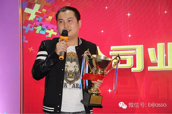 首先頒發(fā)畢加公司年度業(yè)務(wù)業(yè)績(jī)冠軍獎(jiǎng),毫無(wú)懸念2015年度業(yè)務(wù)業(yè)績(jī)冠軍獎(jiǎng)的得主是業(yè)務(wù)二部經(jīng)理——杜少波