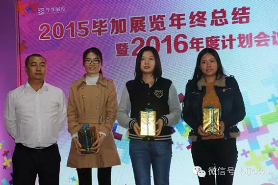 有業(yè)務(wù)部肯定少不了設(shè)計(jì)部,設(shè)計(jì)大神們你們真的準(zhǔn)備好了嗎?2015年度榮獲畢加展覽設(shè)計(jì)業(yè)績(jī)冠軍獎(jiǎng)的是我們的創(chuàng)意設(shè)計(jì)師郭靖莉。在2015年的努力下,小郭定會(huì)在2016年變得更高大,2016年加油哦。