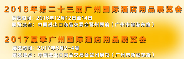 由中國國際貿(mào)易促進(jìn)委員會廣州市委員會,中國烹飪協(xié)會支持,博聞(中國)有限公司主辦,上海博華國際展覽有限公司承辦的“2016上海國際酒店用品博覽會(廣州)”,簡稱HOTELEX Guangzhou,將于12月12-14日在廣州保利世貿(mào)博覽館1-4號館內(nèi)拉開帷幕。展會同期舉辦,2016上海高端食品與飲料展,廣州酒店家具及軟裝設(shè)計(jì)展覽會。