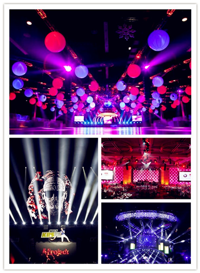 用多種燈光色彩相互配合,營造熱烈的氣氛,給人以興奮感,帶動人們的熱情,如下圖: