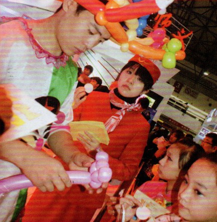展臺(tái)人員的可愛(ài)小丑扮相吸引了小孩子的眼球。小丑能應(yīng)孩子的要求將手中的氣球捏成各種形狀,小孩子驚奇于小丑的“魔法”,久久不愿離開(kāi),展臺(tái)被這群可愛(ài)的孩子圍得水泄不通,吸引孩子的注意力是提升展臺(tái)人氣的一大法寶。